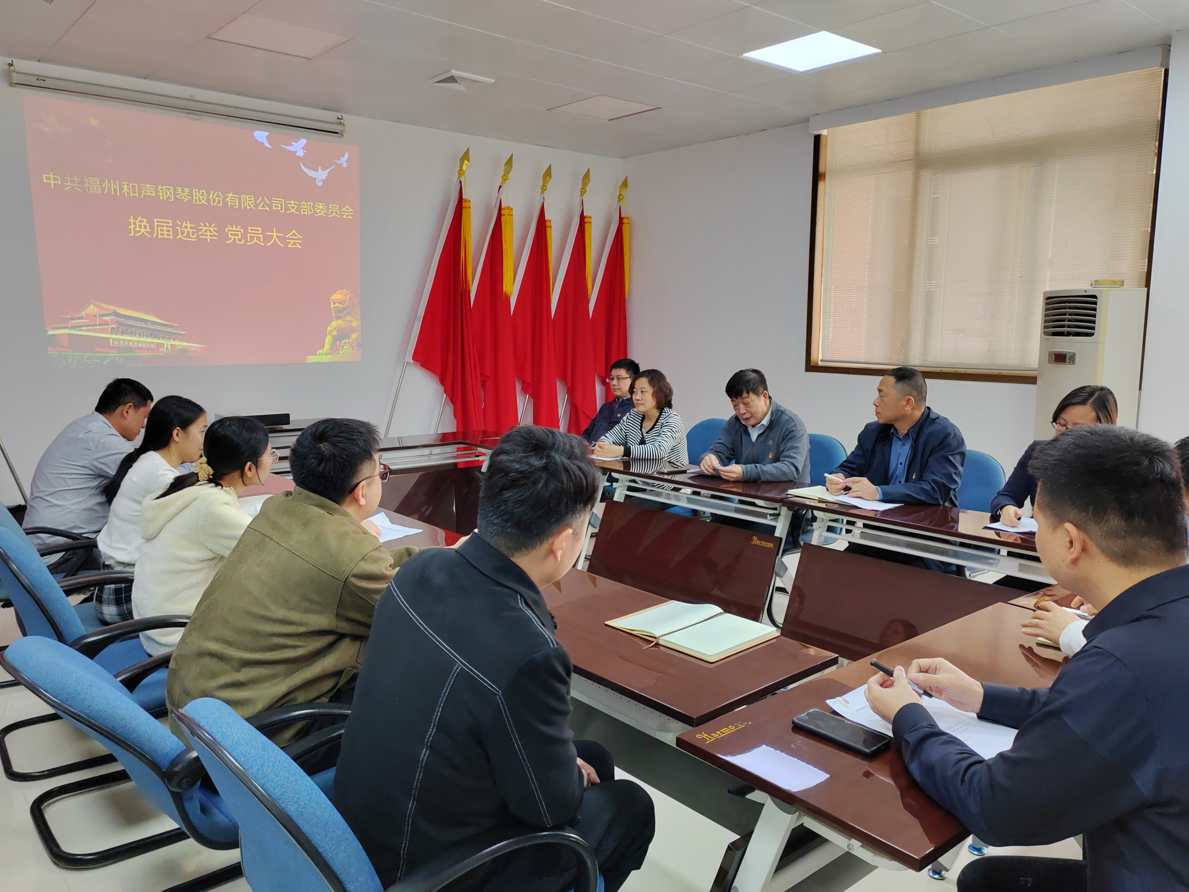 2023年3月21日,中共福州和声钢琴股份有限公司支部委员会召开党员大会,开展换届选举工作,华闽实业集团党委办公室主任林兰钟同志到会指导。会议由公司党支部书记、董事长刘小汀同志主持。